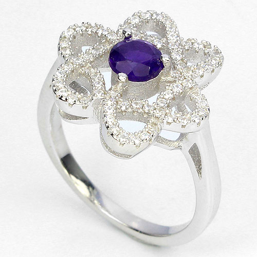 Аккуратное серебряное колечко вес 3.9 грамма натуральный аметист 4,5 мм. вокруг кубик циркона .Лицо кольца 16-15 мм, размер 17.